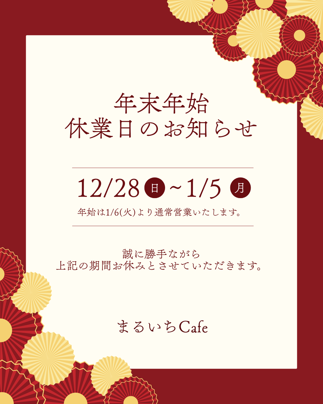 12月28日(日)から1月5日(月)は、まるいちCafe・薬店は年末年始の休業となります。